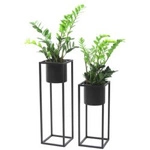 Sada černých kovových květinových truhlíků Iris výšky 60, 80 cm
