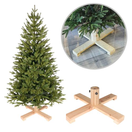 Naše vánoční stromky jsou do detailu propracované. K vánočnímu stromku obdržíte stabilní, silný dřevěný stojan. Ten je naprostým opakem plastových podstavců dostupných v supermarketech - místo abyste stojan schovávali pod látkou nebo krabicemi, můžete ho hrdě vystavit. Díky dřevěnému podstavci vypadá celý přirozeně, luxusně a nadčasově.